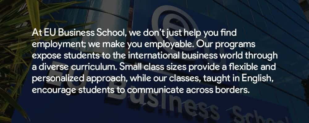 EU is constantly updating its curricula to reflect the latest technological changes: for example, their latest bachelor’s program is in Digital Business, Design Innovation. They have also extended their MBA specializations to include blockchain management. Moreover, they are increasingly aware of the growing influence of artificial intelligence and the role it will play in business in the future. For this reason, they held an AI and robotics summit this year to keep students ahead of these trends.